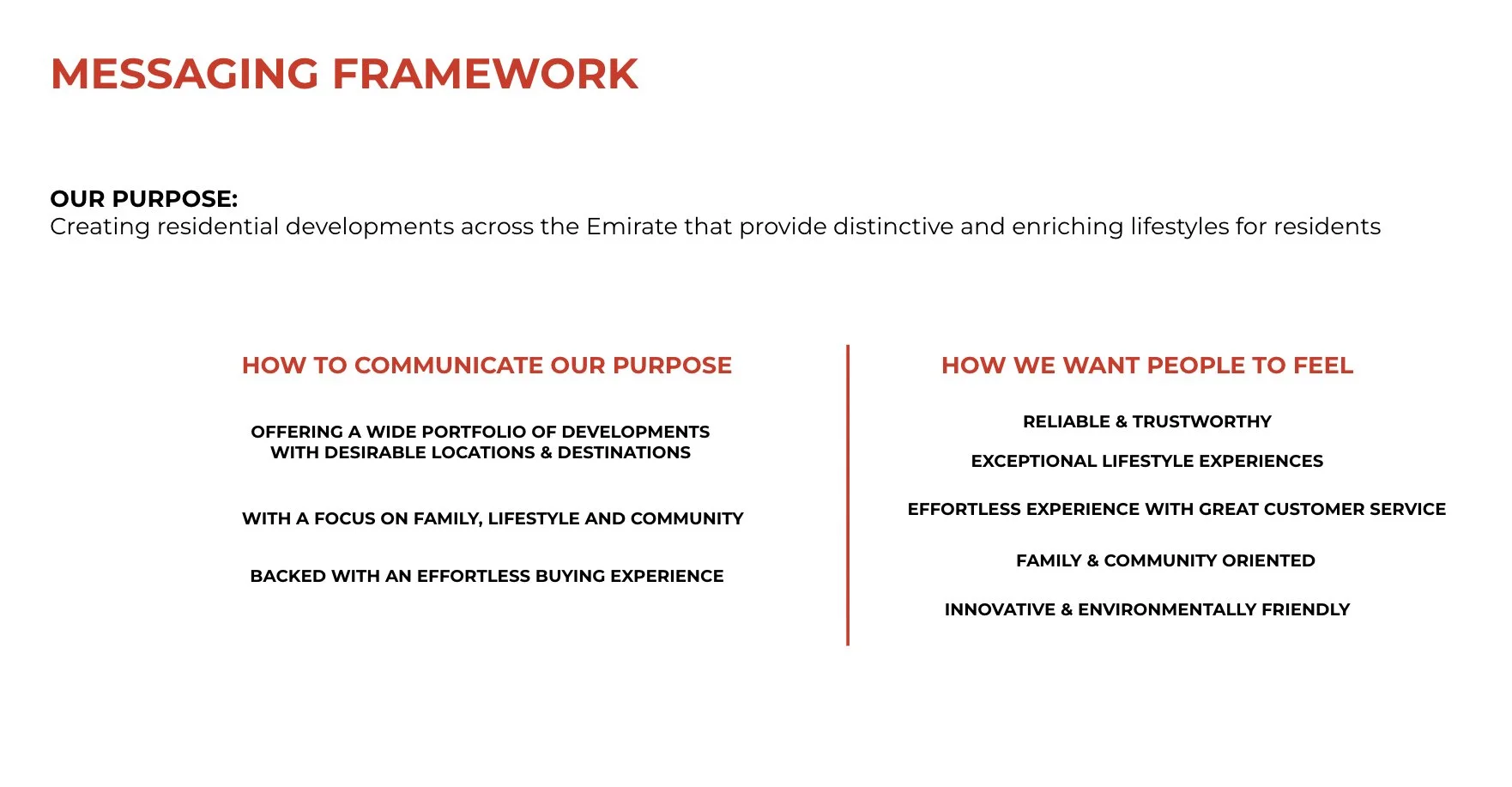 Assembling a robust, agile and adaptive project team that understands the business objectives in building the Meraas brand and social presence. Leveraging data and insights to collaborate and create content and strategies that address the market's needs, focusing on the brand identity and portfolio.